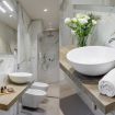 La Suite e' completamente ristrutturata e arredata con gusto e stile contemporaneo. Pavimento in parquet di rovere e bagno in marmo Calacatta molto spazioso e ben rifinito nei minimi particolari. Dotata dei migliori confort e servizi per soddisfare anche le esigenze dei clienti piu' esigenti.